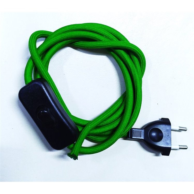 Yeşil Fişli Puarlı Kumaş Örgülü Kablo 2 M