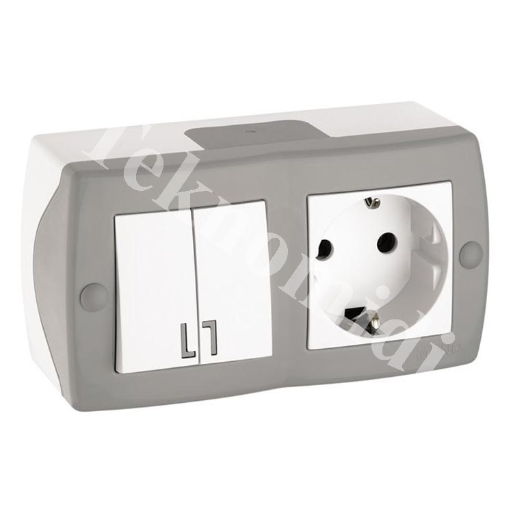 Mono Sıva Üstü Komütatör + Kapaklı Topraklı Priz 104-020001-187