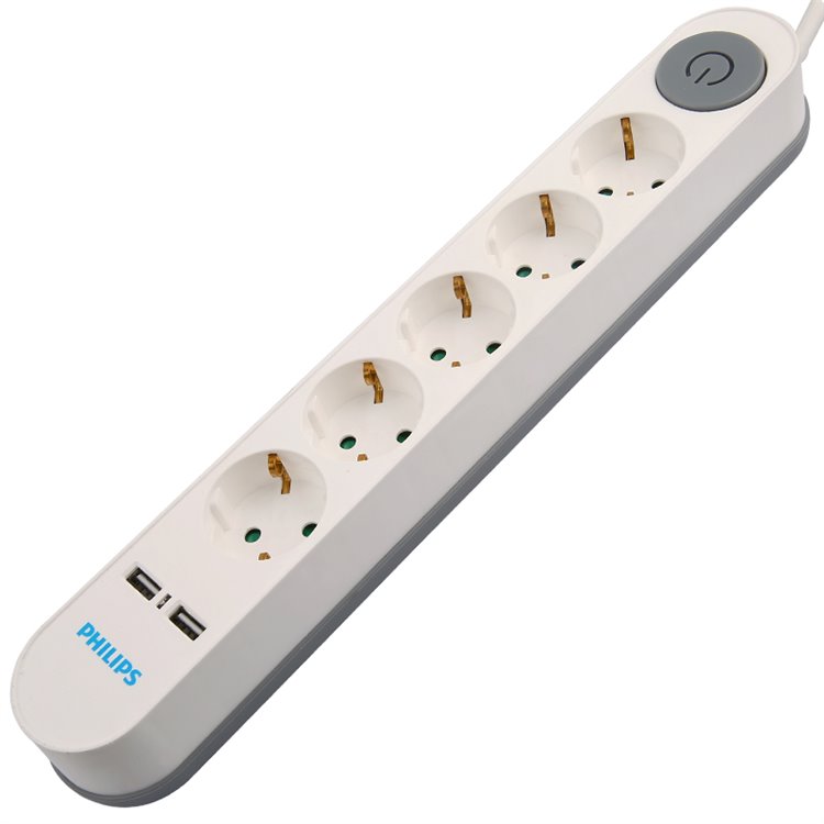 Philips, Sps1153A-51, Beşli, 2 Metre, 2 Usb, Şarjlı Priz